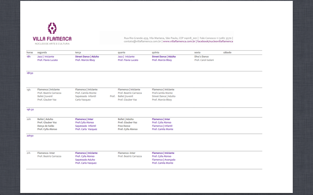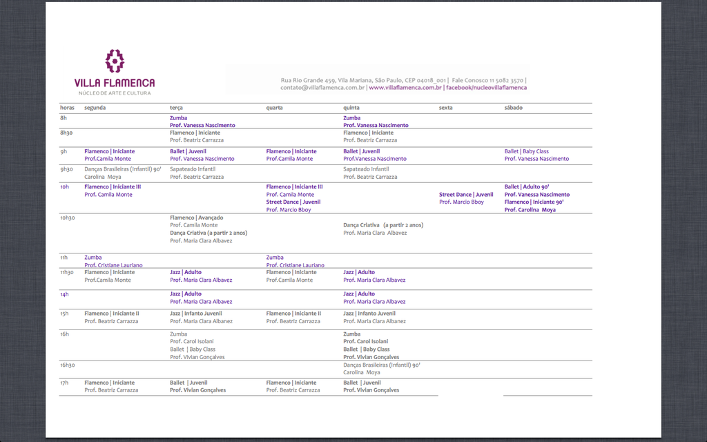 A Villa Flamenca é um espaço de portas abertas para adultos e crianças que quiserem fazer arte, ver arte, se emocionar, sonhar e se divertir. Oferecemos aulas de ballet, teatro, jazz, dança contemporânea, dança de rua, dança de salão, além é claro, de flamenco.
