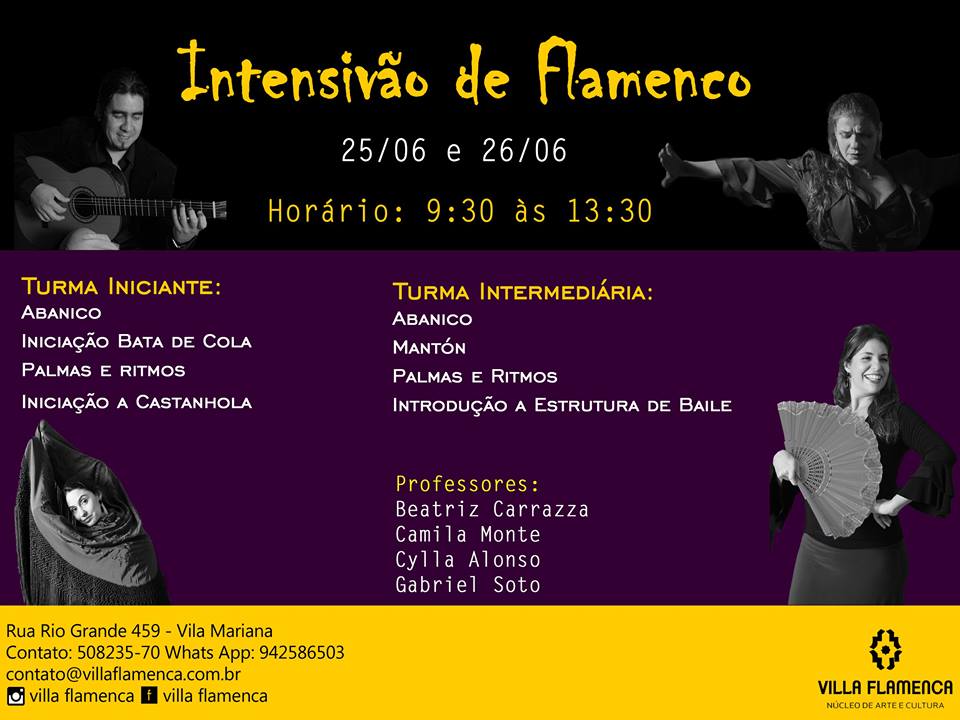Mais uma novidade na Villa Flamenca: Teremos um Intensivão de Flamenco no final de semana do dia 25 e 26 de junho. Serão dois dias de muito aprendizado e diversão.