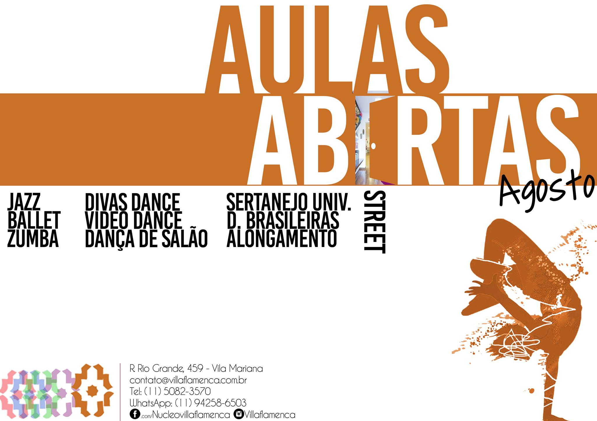 Confira nossos horários e reserve suas vagas em contato@villaflamenca.com.br ou pelo WhatsApp 94258-6503