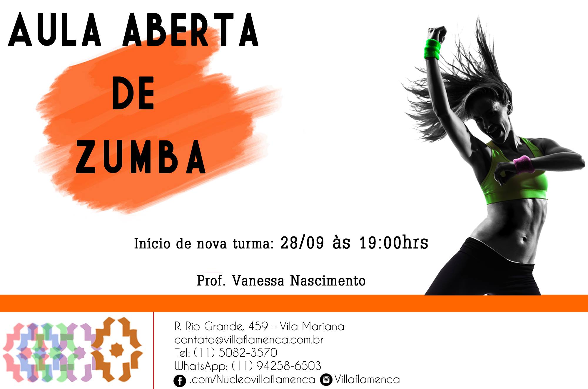 Na próxima quarta teremos uma aula aberta de Zumba! Venha conhecer, nos mande um WhatsApp no 94258-6503 ou um e-mail em contato@villaflamenca.com.br para garantir sua vaga.