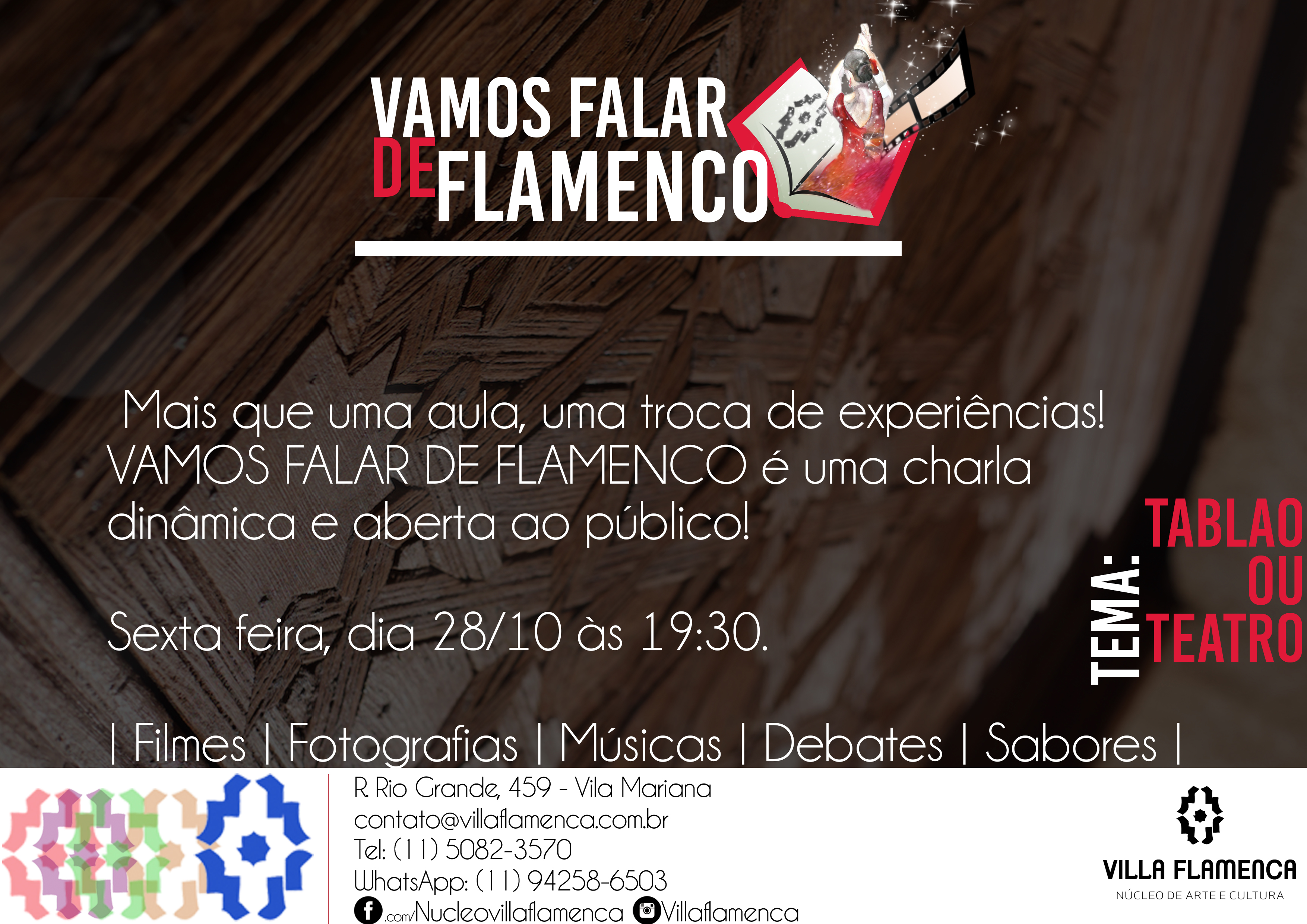 Nosso primeiro encontro será no dia 28/10 e o tema da noite será Tablao ou Teatro.