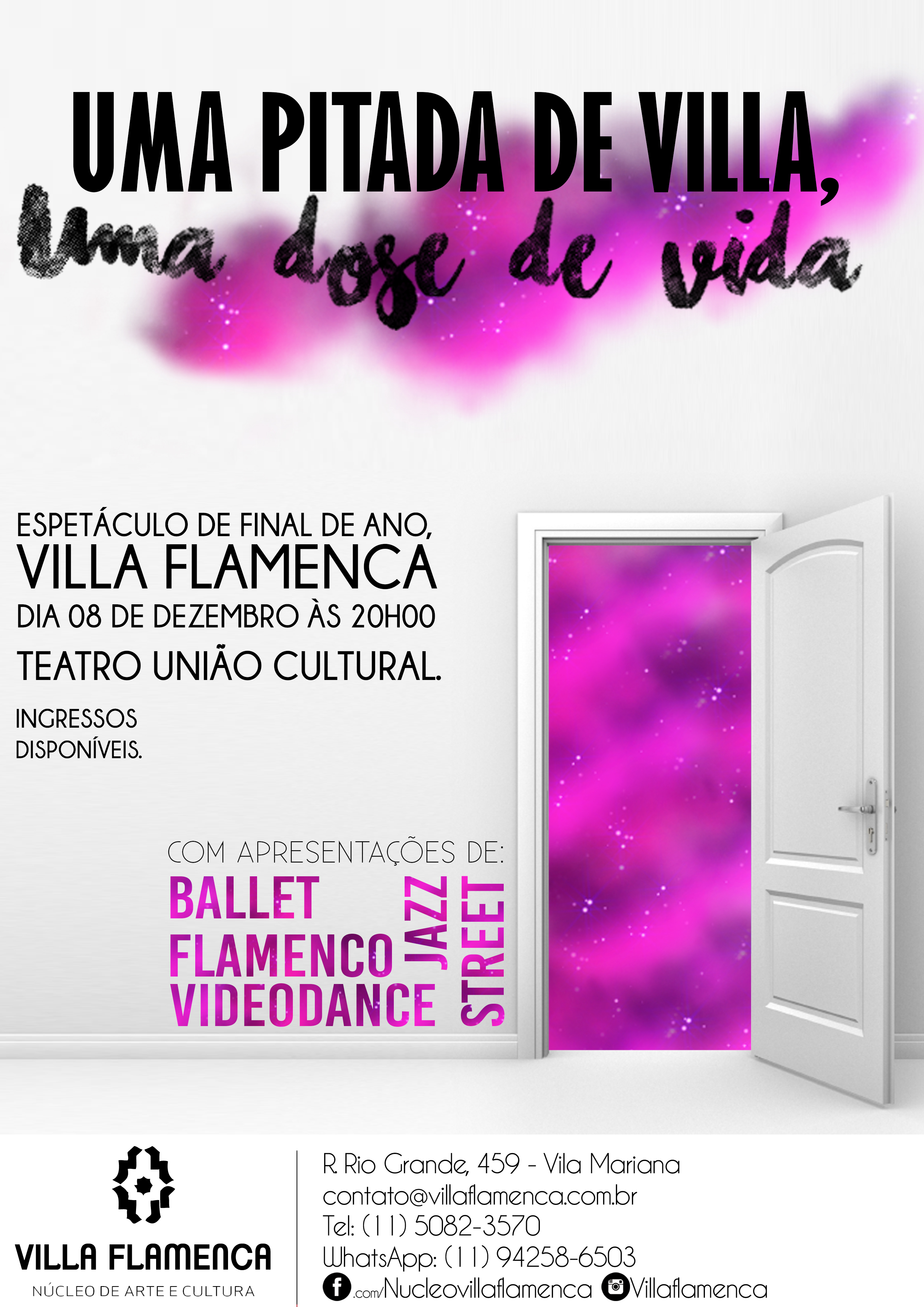 Ingressos por R$50,00. Reserve seus ingressos pelo WhatsApp 94258-6503 ou pelo contato@villaflamenca.com.br