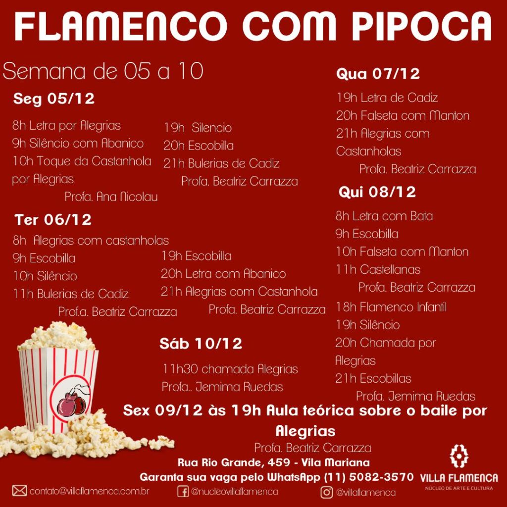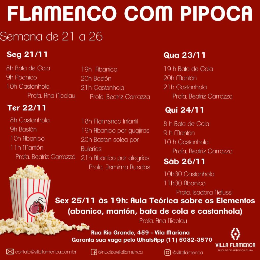 Preparamos uma grade especial de aulas para esse mês. Teremos semanas temáticas, trabalharemos com um tema a cada semana sempre finalizando a semana com uma aula teórica de Flamenco com pipoca.